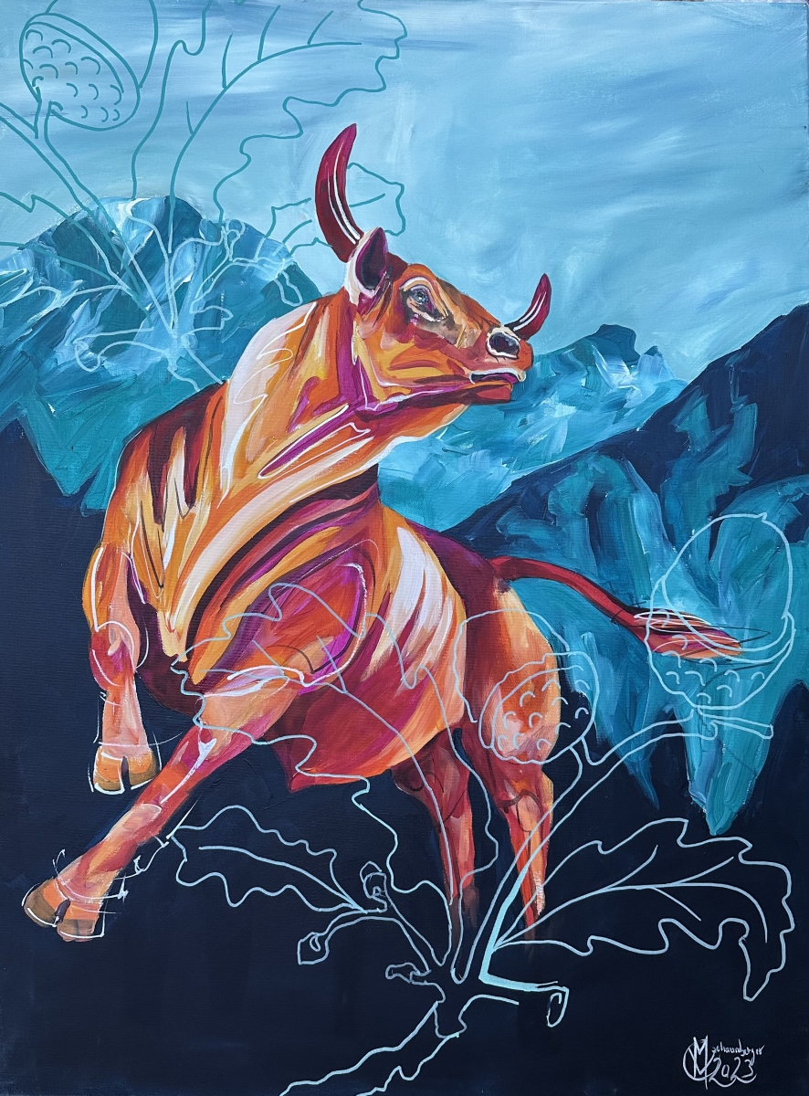 Kräftige Farbflächen und expressive Pinselbewegungen öffnen einen Bildraum zwischen Realität und Symbol. AlpenSeeleerzählt von der stillen, oft unsichtbaren Verbindung zwischen Mensch, Tier und Landschaft von einer Kraft, die in der Natur liegt und zugleich in uns selbst.